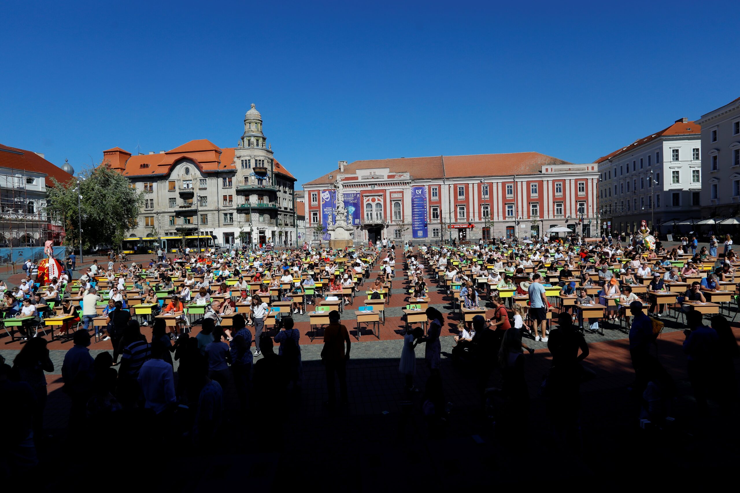 Câteva sute de persoane s-au adunat duminică în Piața Libertății din Timișoara pentru a participa la „Marea Dictare Urbană”. Un concurs care, pe lângă competiția scrisului corect, a fost o adevărată celebrare a limbii române. De la tineri elevi la bunici venerabile, diversitatea publicului a fost un semn al aprecierii față de frumusețea cuvintelor corecte.